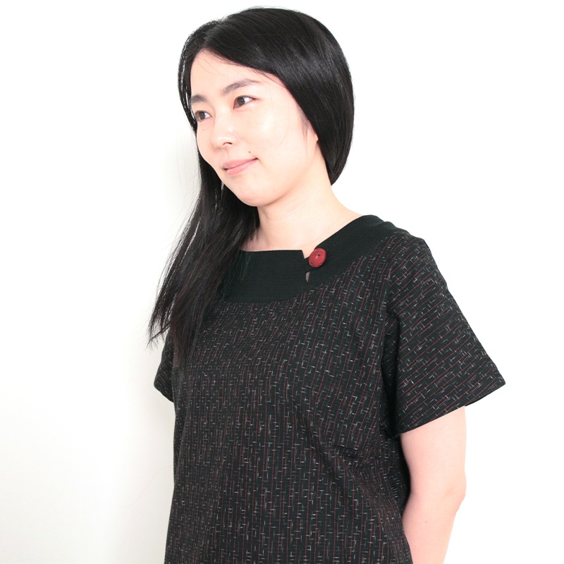 ショートブラウス [彩藍 小刺子(こざしこ)] 黒/赤 綿100%
