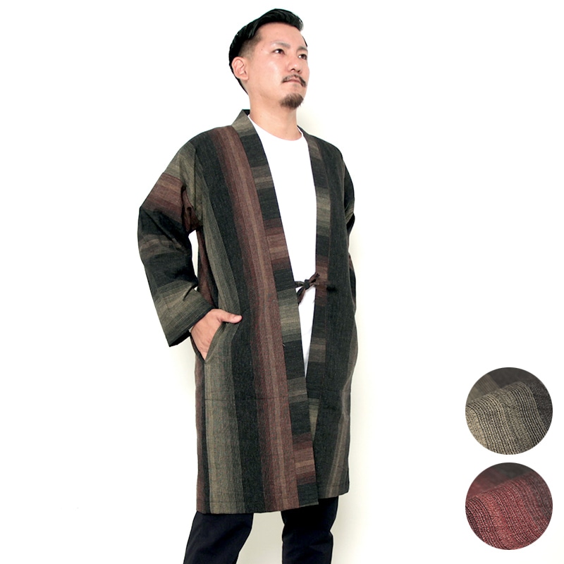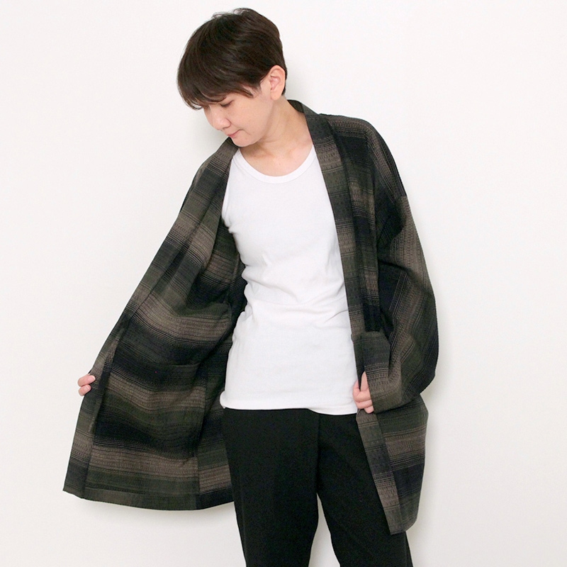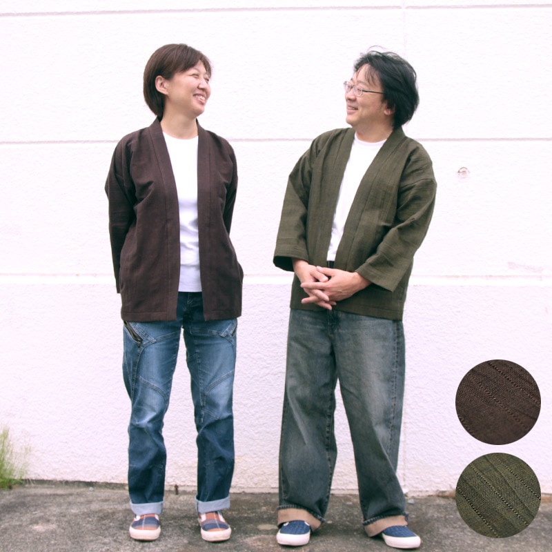 haori [surabuiri hikisoroe] ブラウン グリーン 秋冬春向け 綿100% ※new size