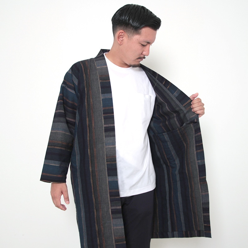 haori [wataridori long] ブルー ロング丈 秋冬春向け 綿100% 男女兼用