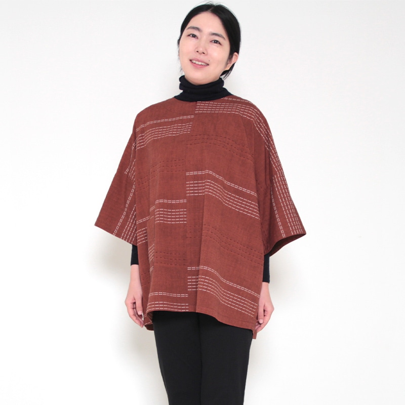 【数量限定】五分袖半纏 [しずく刺し子] エンジ 中わた:綿100% 身丈74.5cm