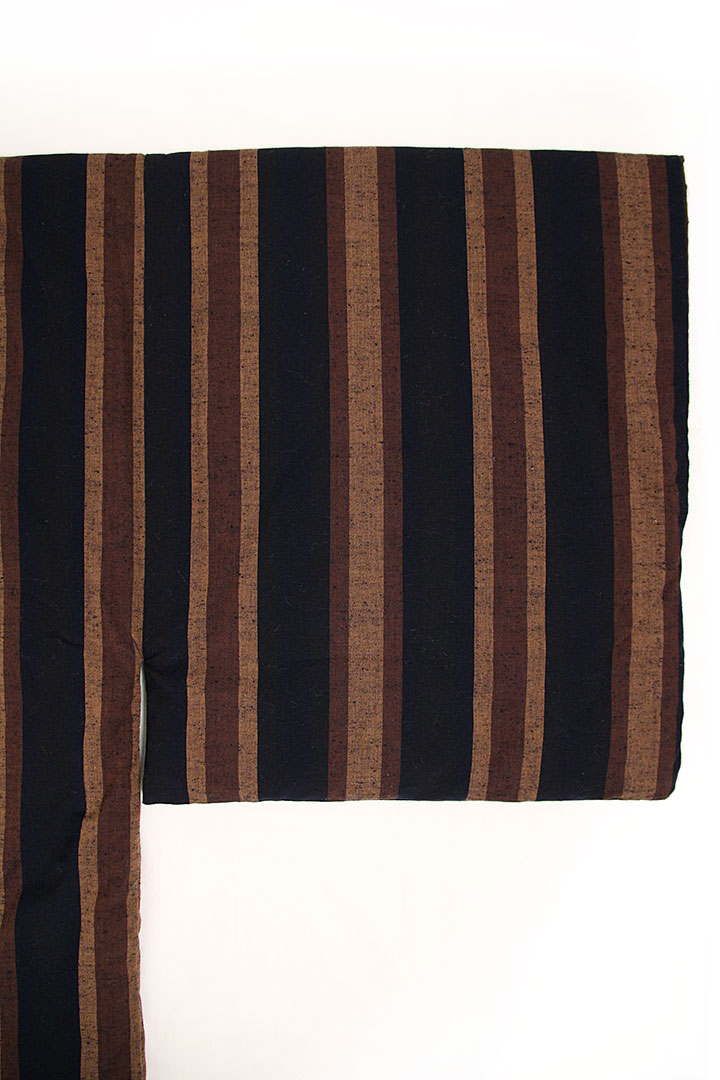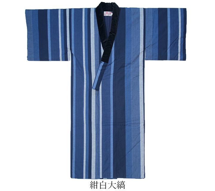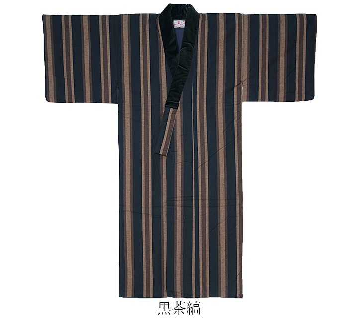 衿には貫八綾織の黒別珍を使用し、足まですっぽりと温かい昔ながらの長丹前。掻巻をお探しの方にもおすすめ。日本製。