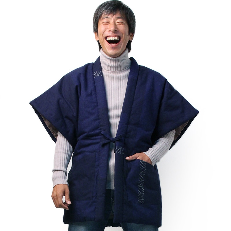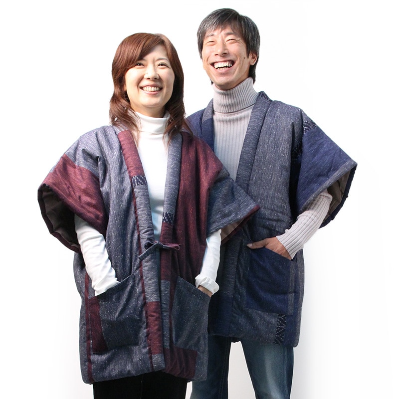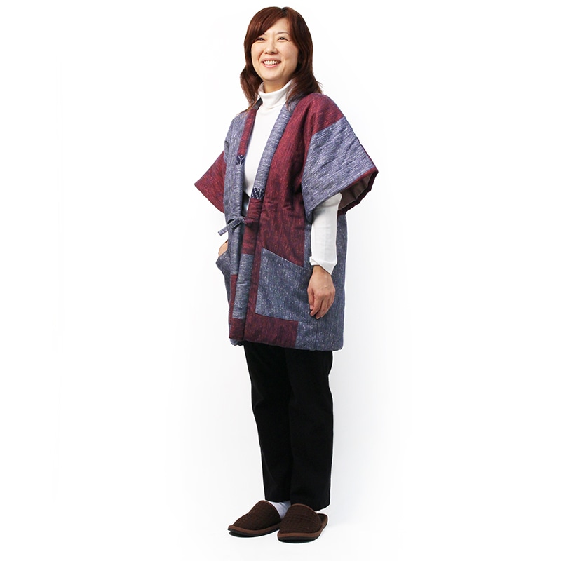 【人気色のみ追加生産・数量限定】半纏 [絣調ドビー入り袢天] 全4色 混紡わた ロング93cm丈