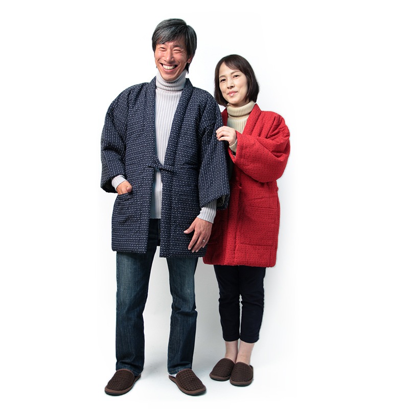 60代の夫婦です。待ちにまった「はんてん」が着き、期待以上に素晴らしいデザインが到着してすぐに着て、家にいる間はいっときも離せず着ております。宮田織物さんのはんてんはずっと孫や母・祖母(90代)ととりよせては喜ばれてます。小学生に成長した孫にサイズがないので早く大人になってはんてんがほしいといってます。幼稚園までは、ずっと孫は愛用してました。デザインもどの型をみても現代風の柄もあり世界にはばたいておられるようすが伺えます。日本の誇りですね。安価で手作り!本当にうれしいです。子どもサイズが小学生にも着れるように作ってほしいです。又、今回あたたかい心遣いのきんちゃく袋に又又感激!です。大切につかわせていただきます。