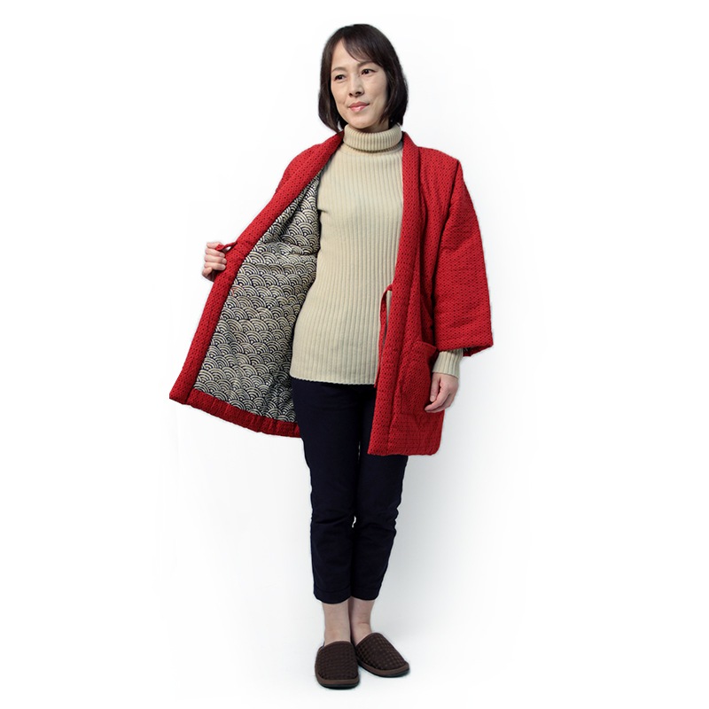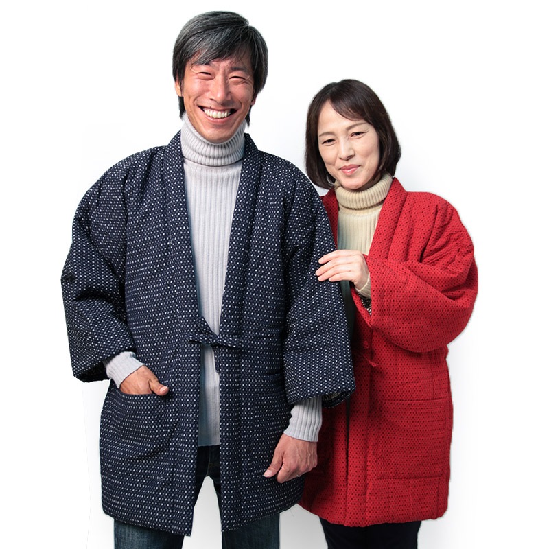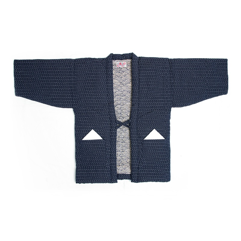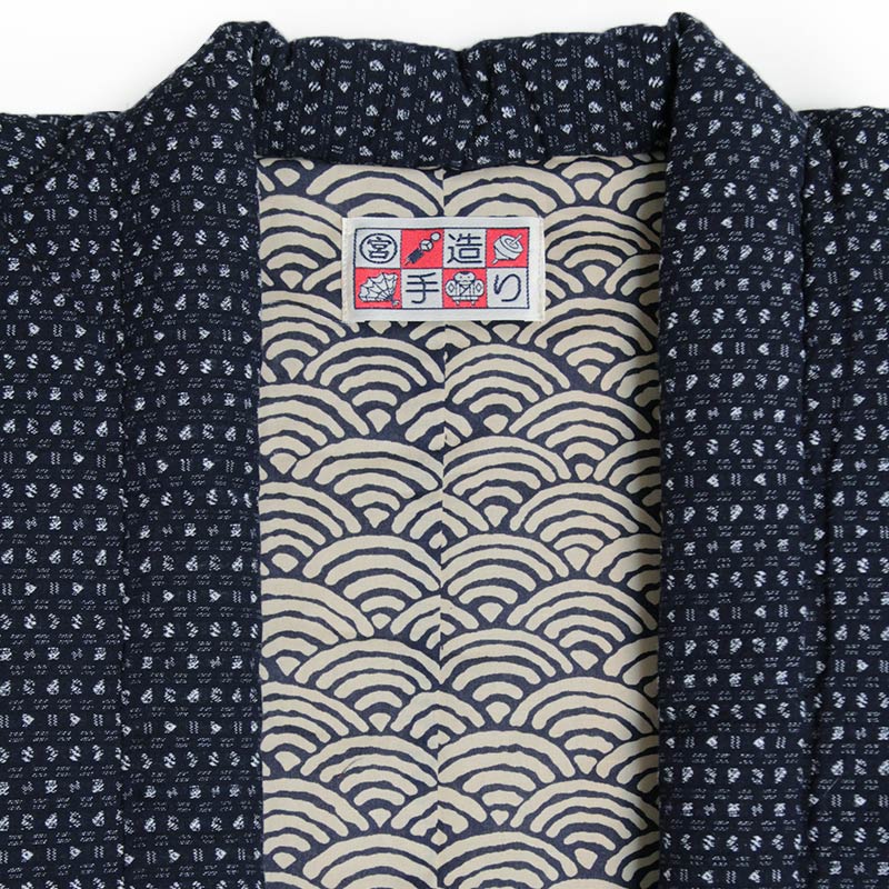 ふんわりと柔らかな着心地の半纏をお探しの方に宮田織物のあられ半纏がおすすめ。裏地には吉祥文様である青海波を使用。プレゼントにも好評。日本製。