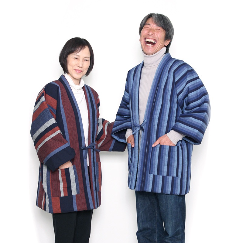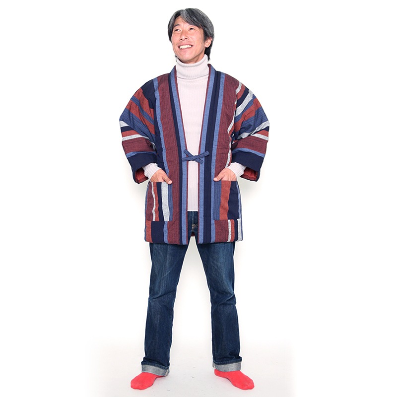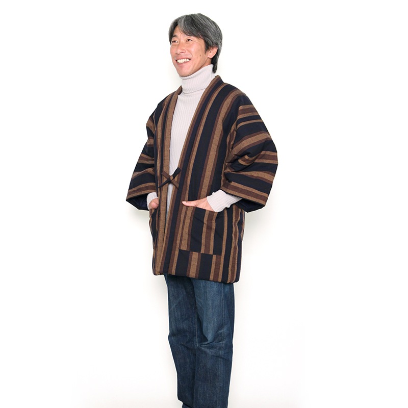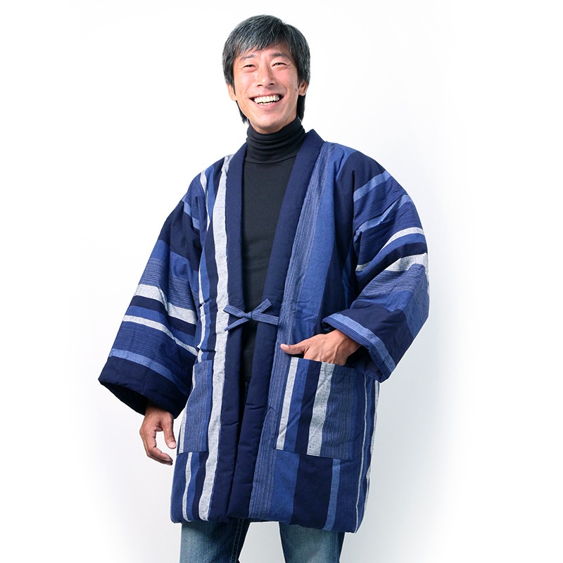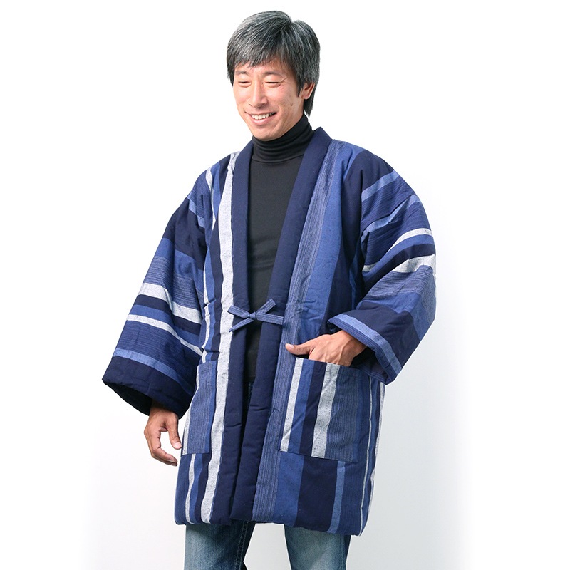 大きいサイズの半纏をお探しの方に宮田織物の半纏の中でも毎年人気の藍調半纏シリーズの2Lサイズ。プレゼントにも好評。日本製。