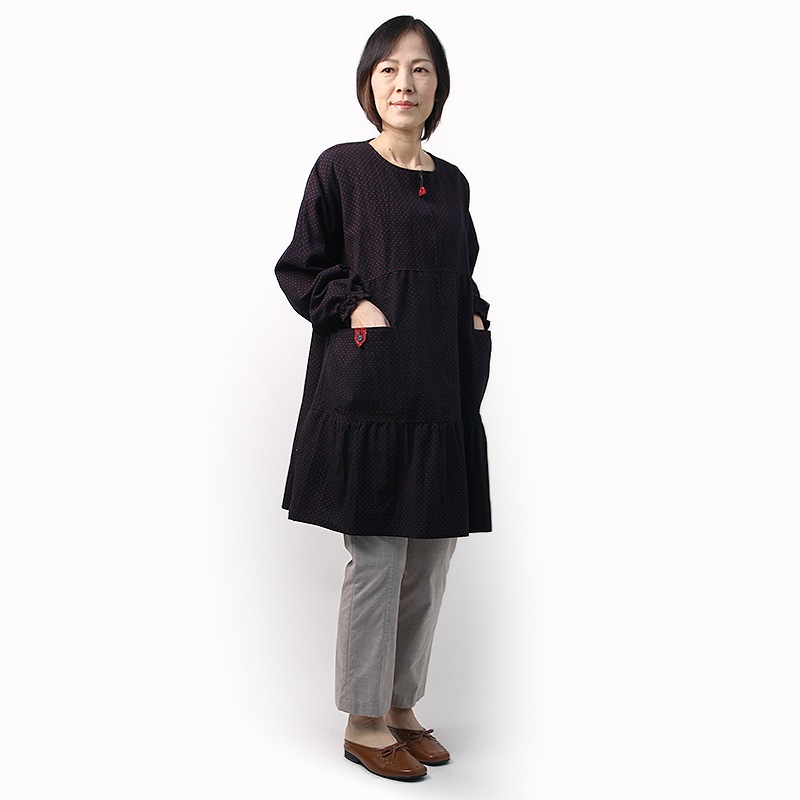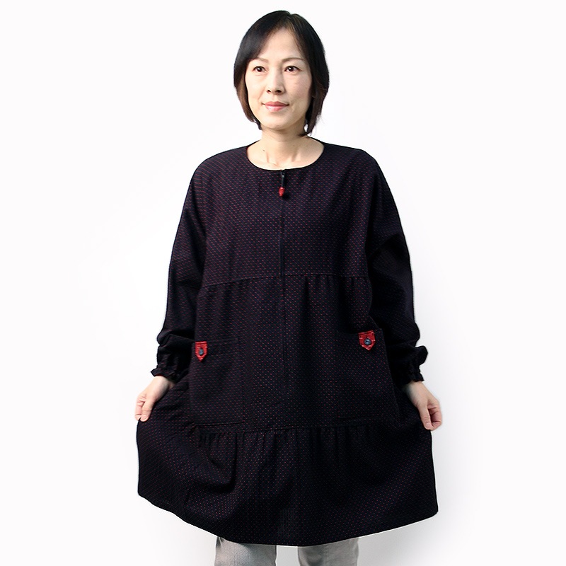 スモック [彩藍 薄小絣調スモック] 薄小絣調 黒 綿100% ※贈りものギフトに