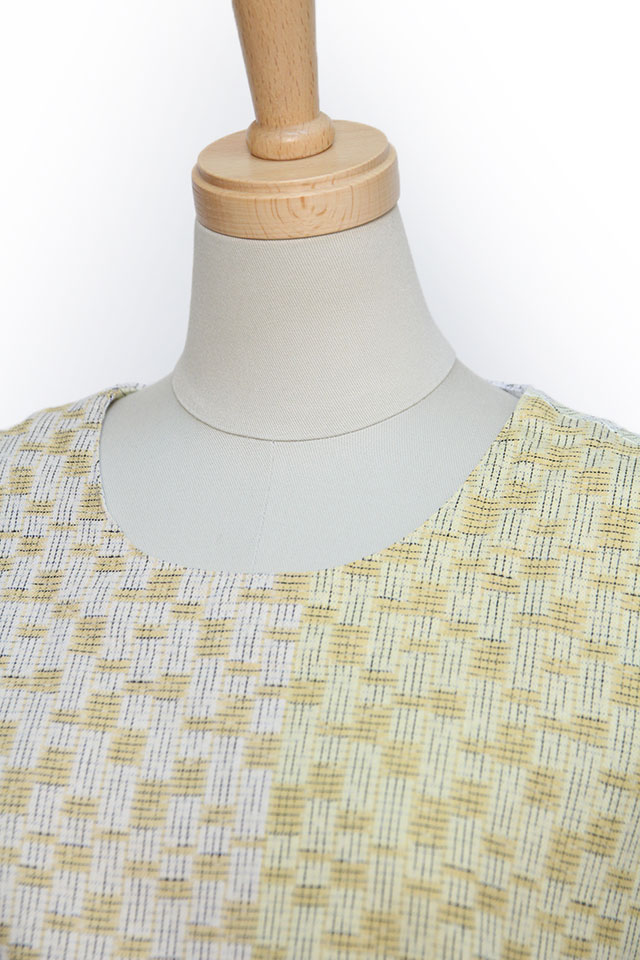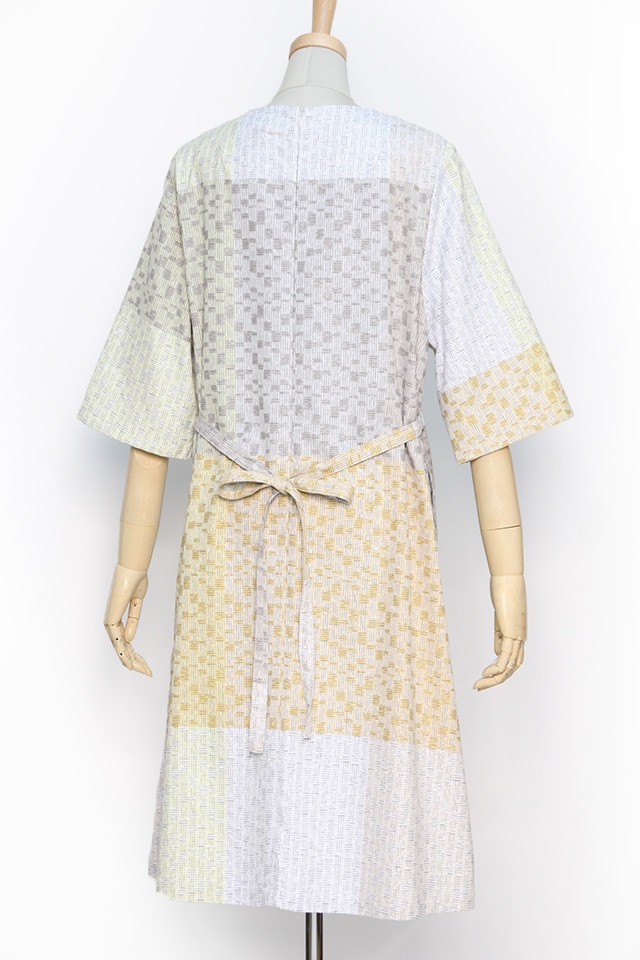 和木綿の「oboro」を使用したワンピース。ややしっかりとした上質もめんの肌ざわりが心地よい一枚です。日本製。