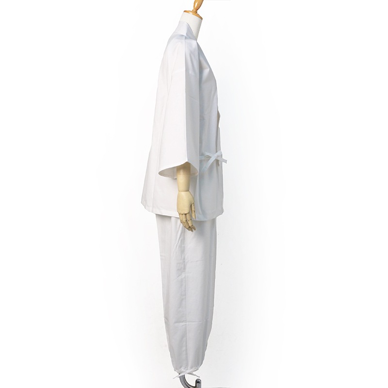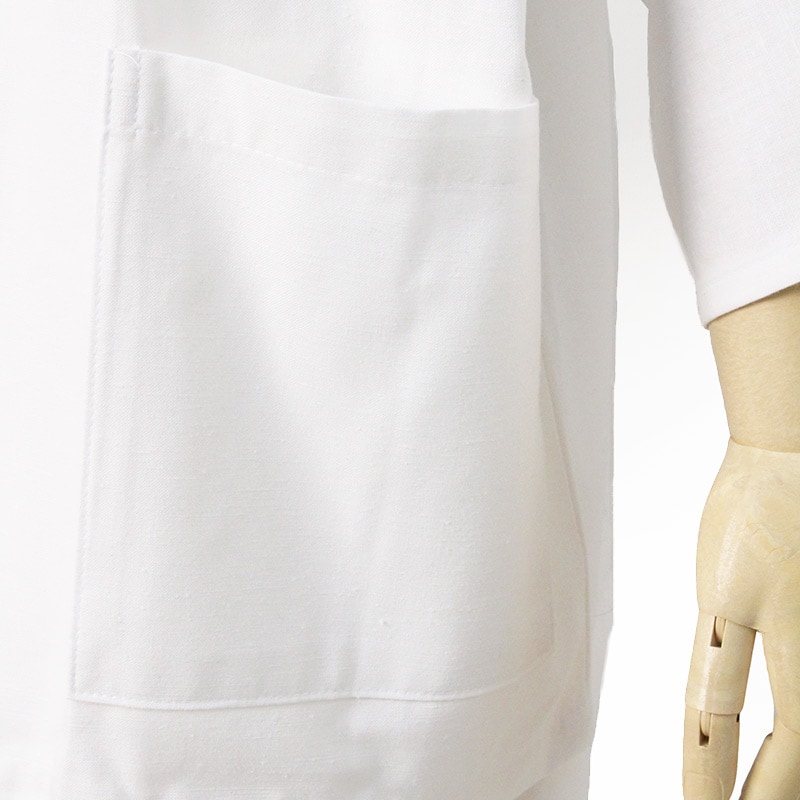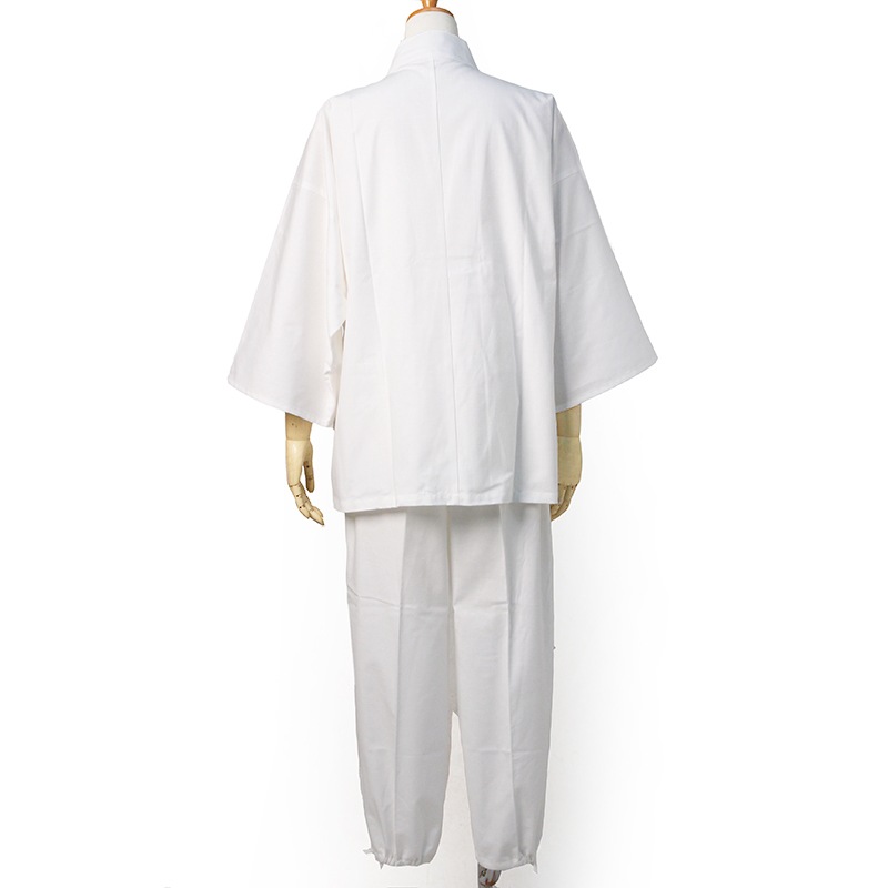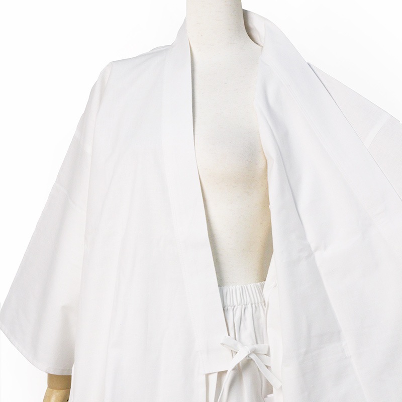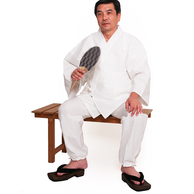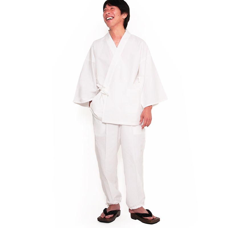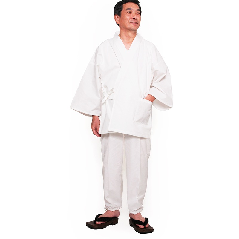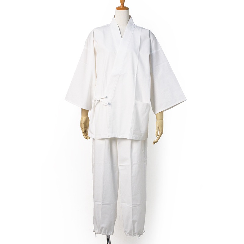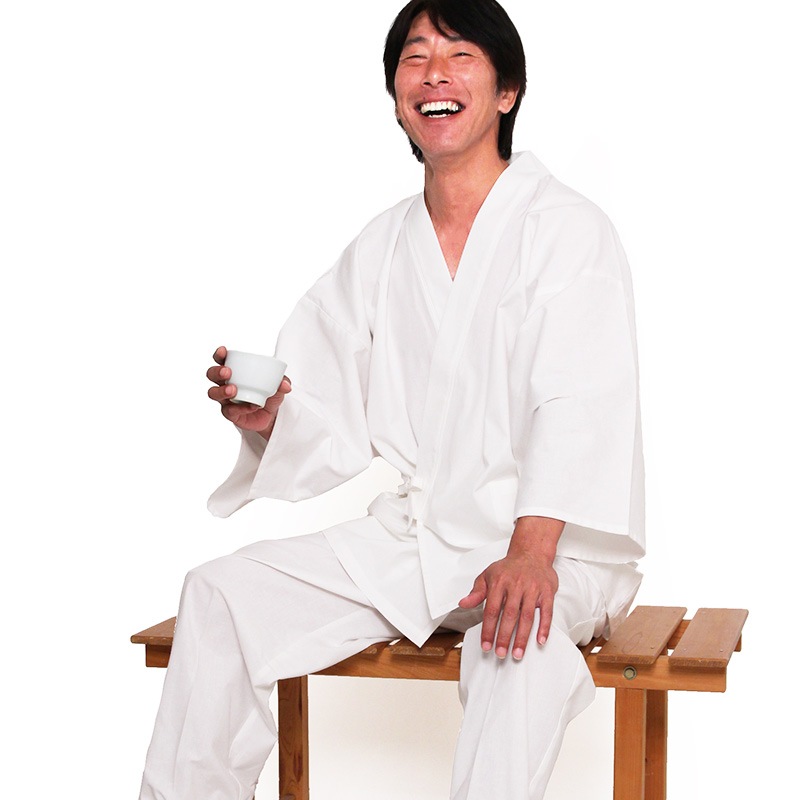 白作務衣は、汚れが気になるというお客様のご要望に応え、はっ水加工を施した白作務衣が完成。ポケットも増えました。日本製。