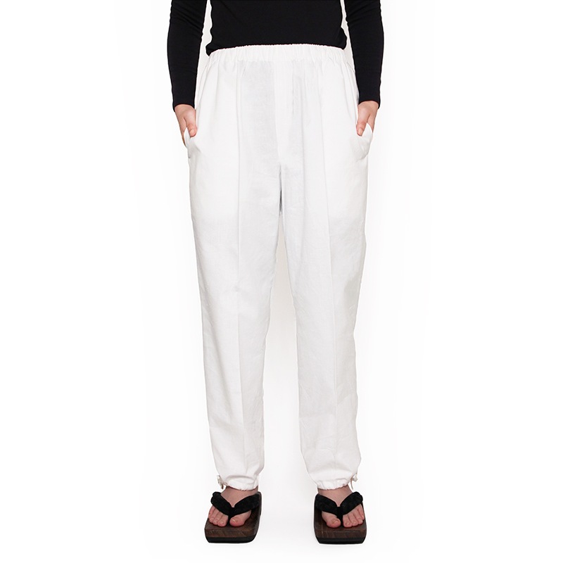 【新型】作務衣 [紬織り パンツ両サイドポケット仕立て] 白 通年用 綿100% M/L/LL ※撥水加工無し