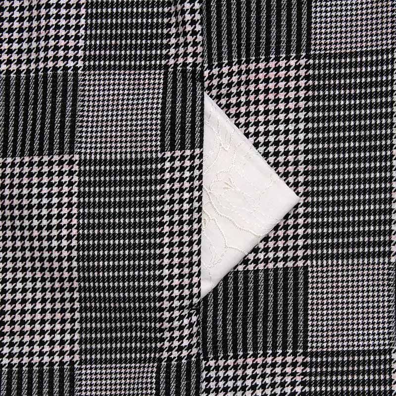 白地に黒を基調とした柄。淡いピンクが入り優しい印象に。 |