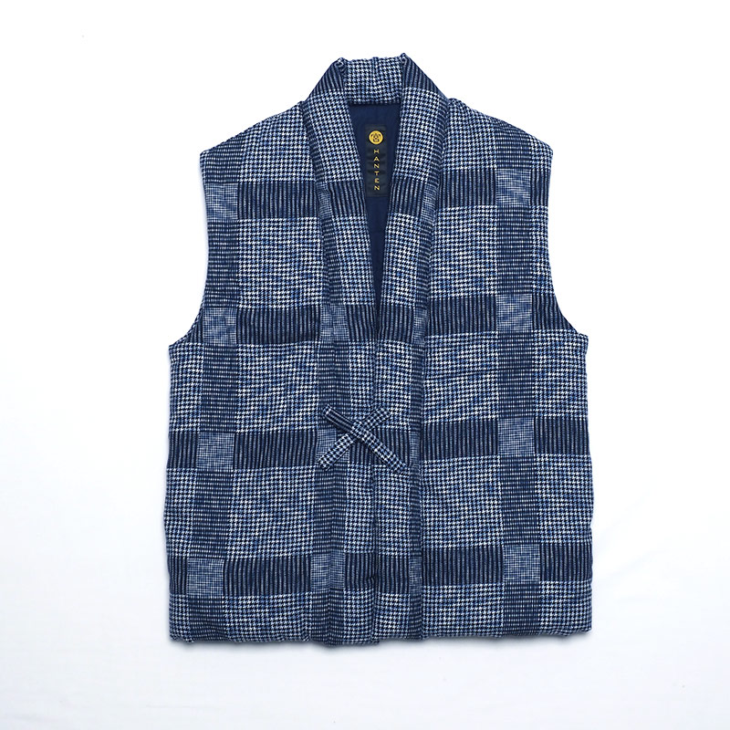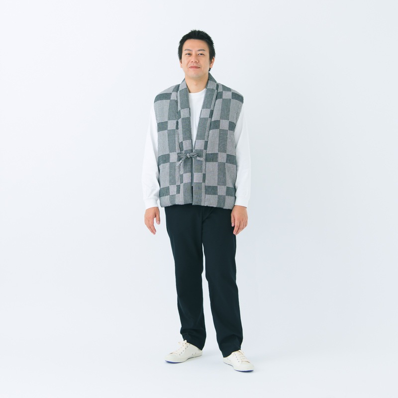 【在庫限り 生産終了】袖なし半纏 [山並みロングポンチョ oversized] 紺・グレー 混紡わた ロング91cm丈【WEEKLY HANTEN SHOW ! 掲載商品】