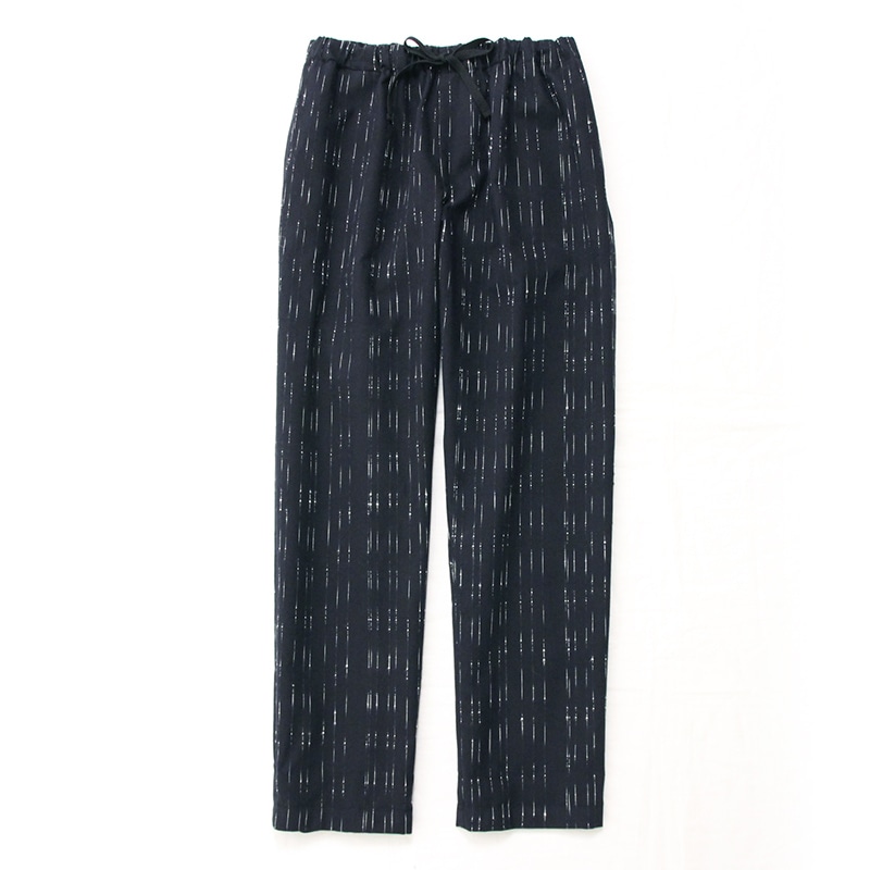 木綿織物の老舗「宮田織物」がつくる男女兼用のイージーパンツ。起毛加工し、ふんわりと柔らかく温かな肌ざわりの「turara pants」。ウエスト総ゴム仕立てのラクな着心地。日本製。