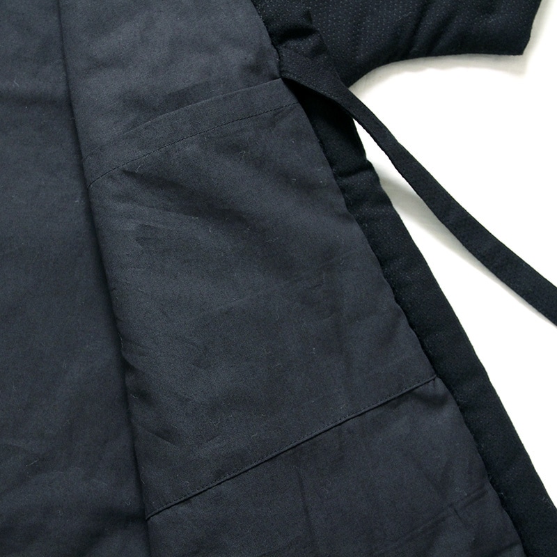 ※わた入れはんてんの中わたの繊維は白のため、下記写真のように織りの隙間から出た中わたの繊維がやや目立つ傾向にあります。予めご了承下さい。