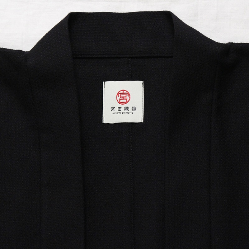和木綿「nadesiko(なでしこ)」を使用した羽織ができました。黒地に黒の刺し子調の織り。日本製