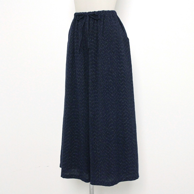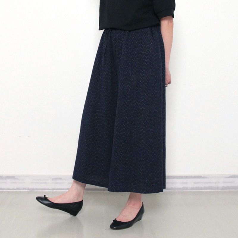 ふんわりとしたロングスカートのように見える上品なワイドパンツ。ウエスト総ゴム仕立てで、涼やかでラクな履き心地。日本製