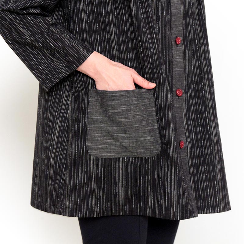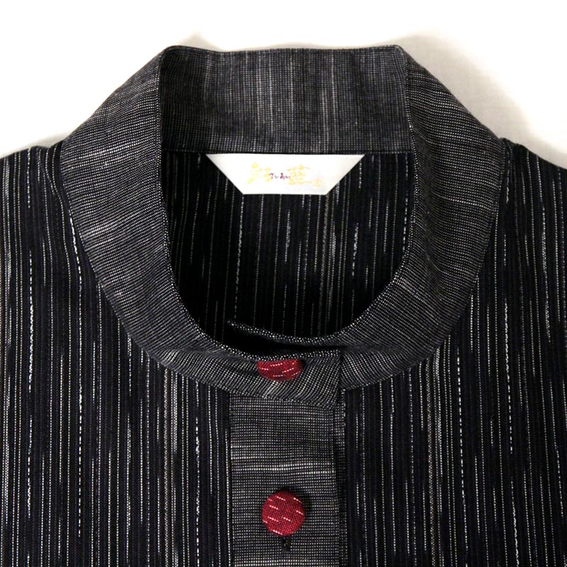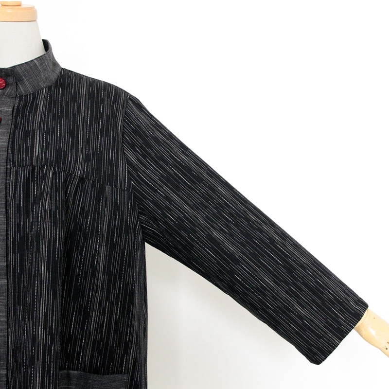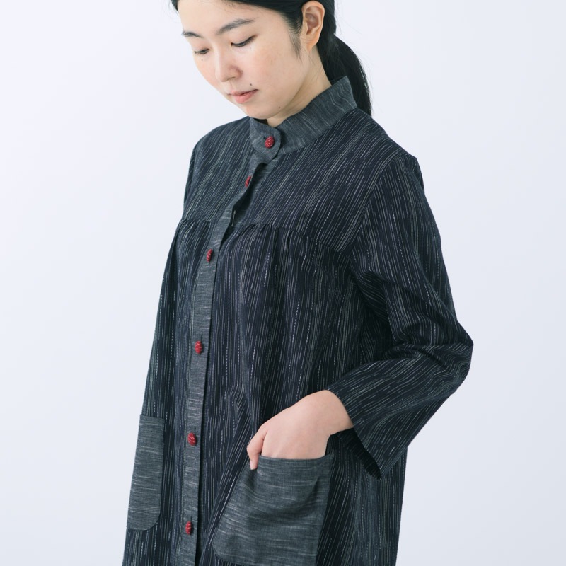 ランダムな織柄が特徴的な和木綿「麦打(むぎうち)」を使用した、さらりとした肌ざわりの上品なブラウスができました。日本製