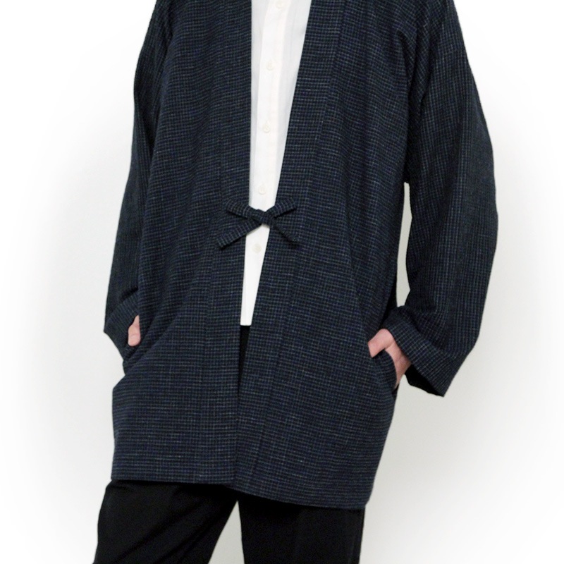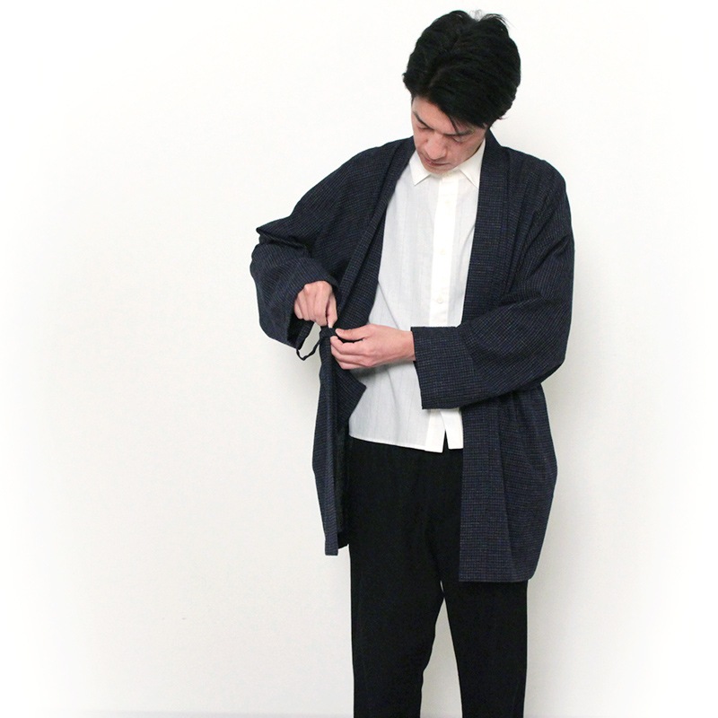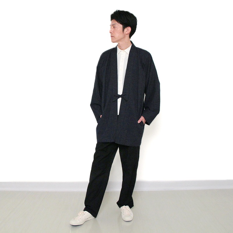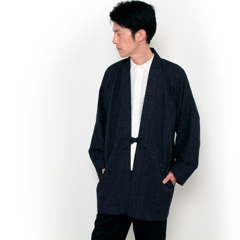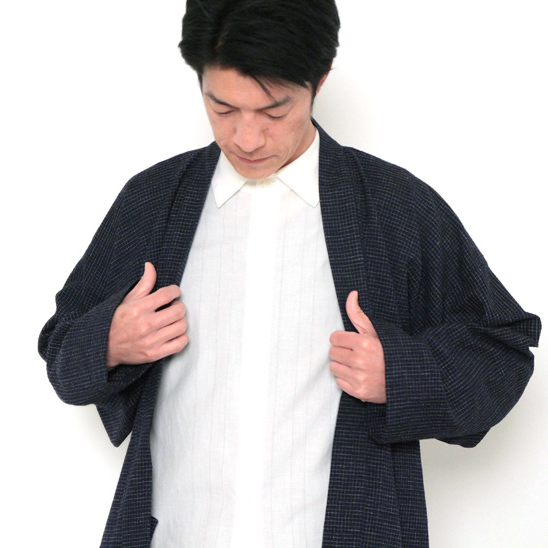 和木綿「bunjinsijira(文人しじら)」を使用した羽織に待望のワイドサイズができました。昔から愛されている文人柄を夏向けのしじら織りで表現したテキスタイルを使用。男女問わず人気がある柄。日本製。