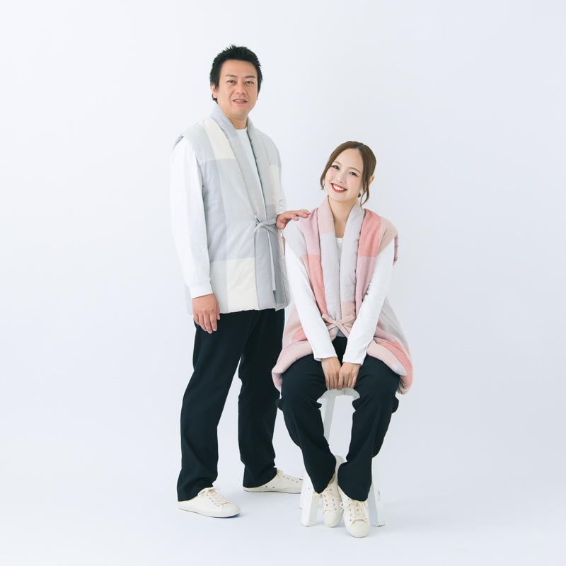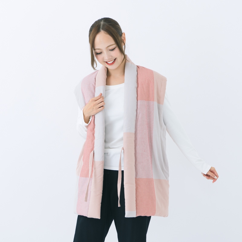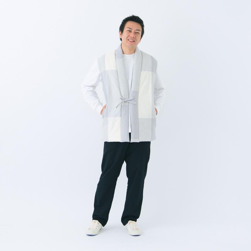 柔らかい色調のパネル柄に、刺し子を施した「nodoka(のどか)」。人気のロングポンチョの型をやや小ぶりにし、丈を短くすることでフィット感を高めました。日本製
