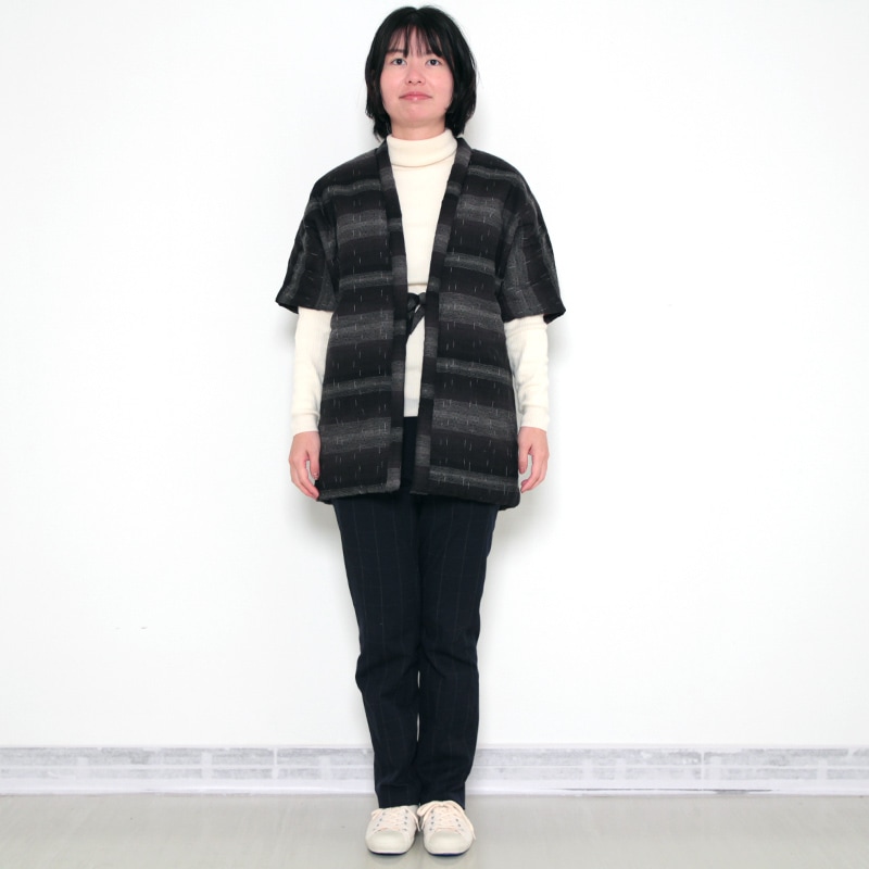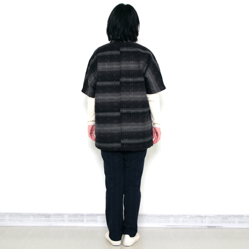 【数量限定】五分袖半纏 [BLACK] 黒 中わた:綿100% 身丈74.5cm
