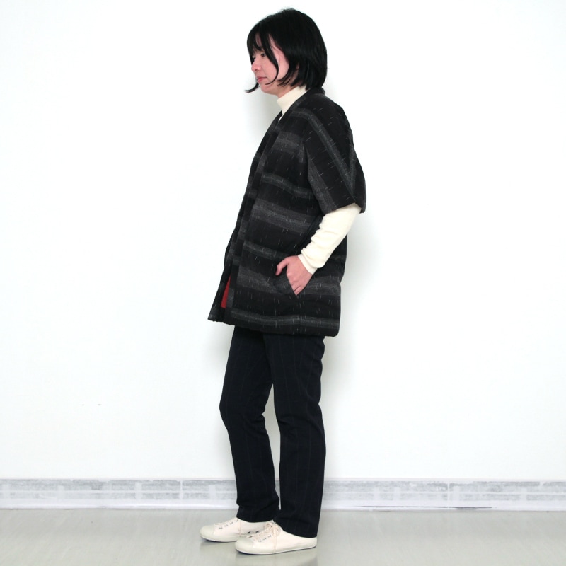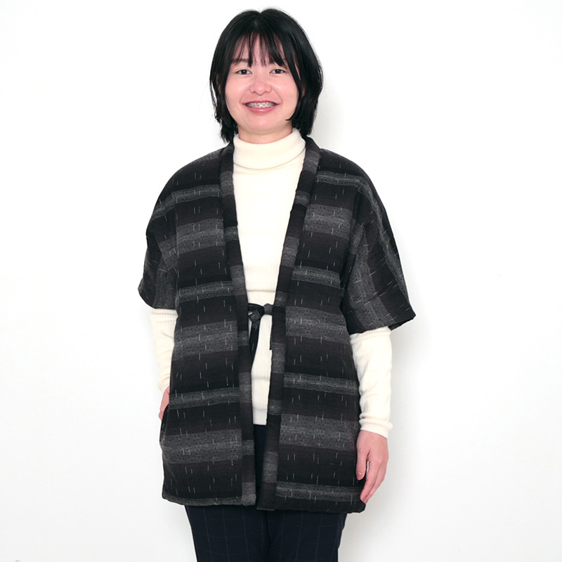写真は、同型の五分袖はんてん[zigzag(完売)]を着用