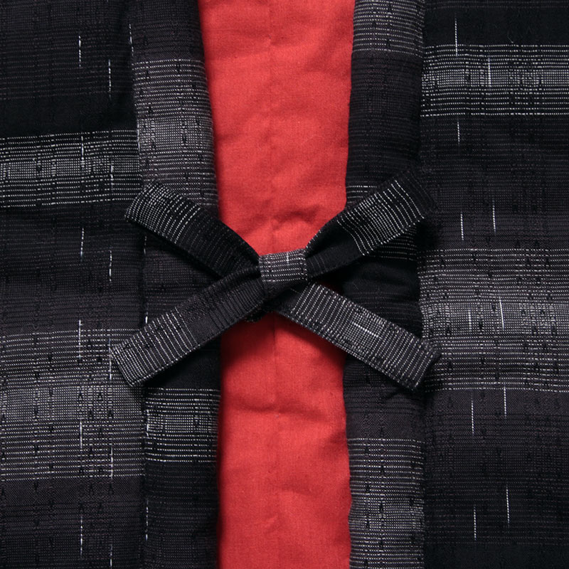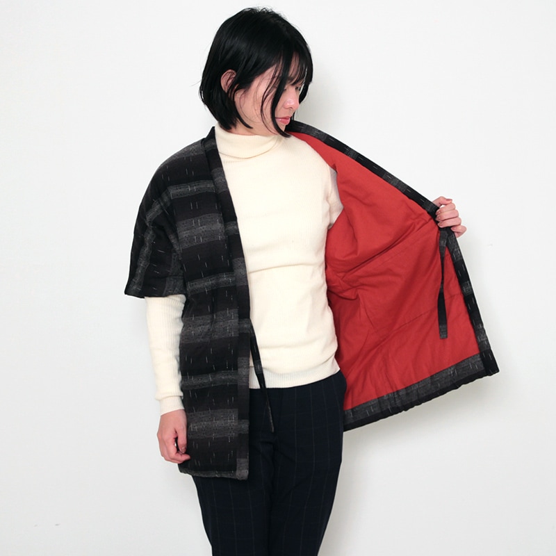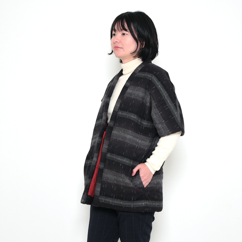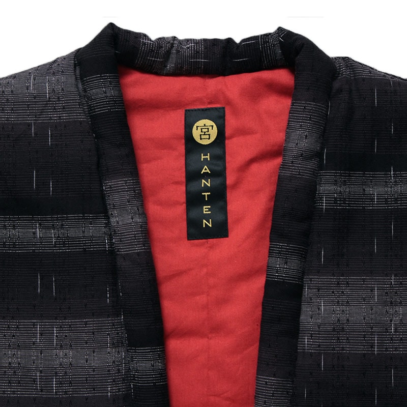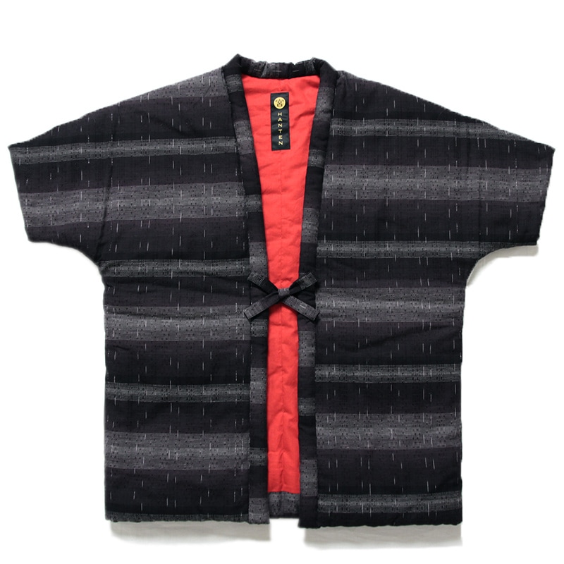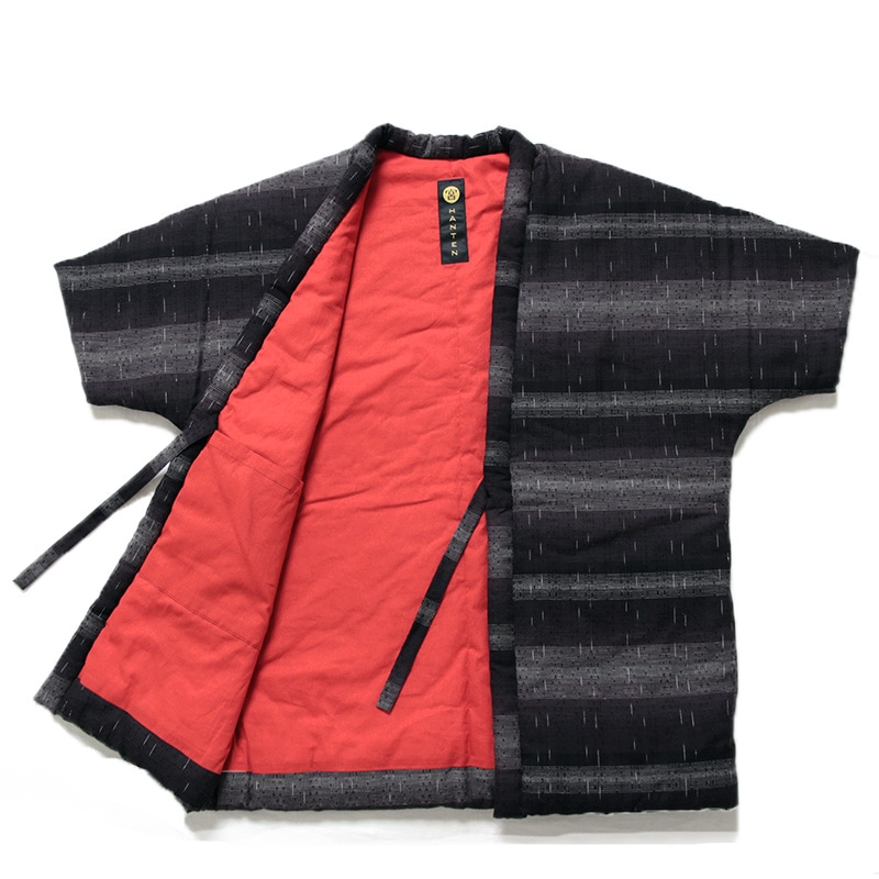 【数量限定】五分袖半纏 [熱砂] 黒/赤 中わた:綿100% 身丈74.5cm