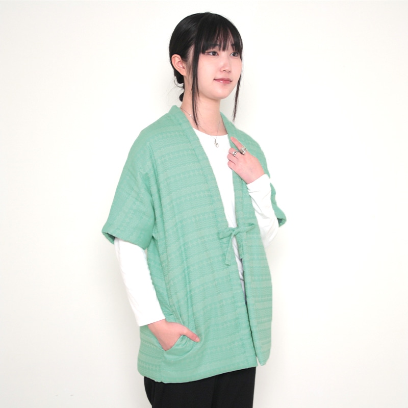 【数量限定】五分袖半纏 [風雅] グリーン 中わた:綿100% 身丈74.5cm