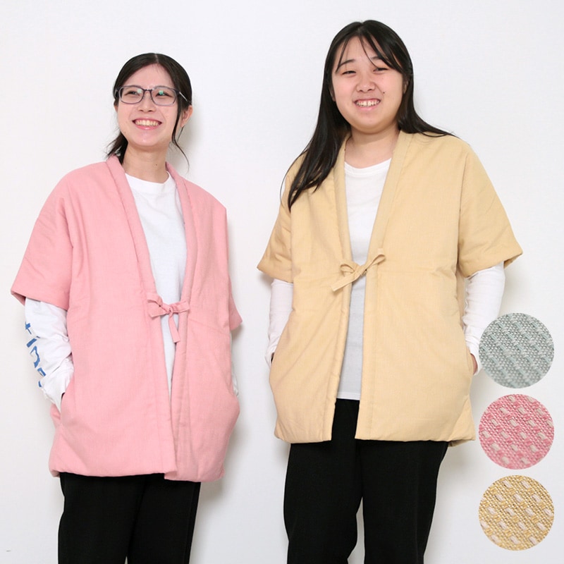 【数量限定】五分袖半纏 [konpeitou] 全3色 中わた:綿100% 身丈74.5cm