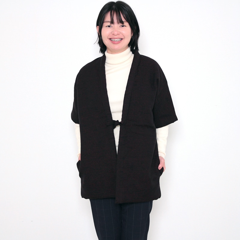 【数量限定】五分袖半纏 [茶の木] 全2色 中わた:綿100% 身丈74.5cm