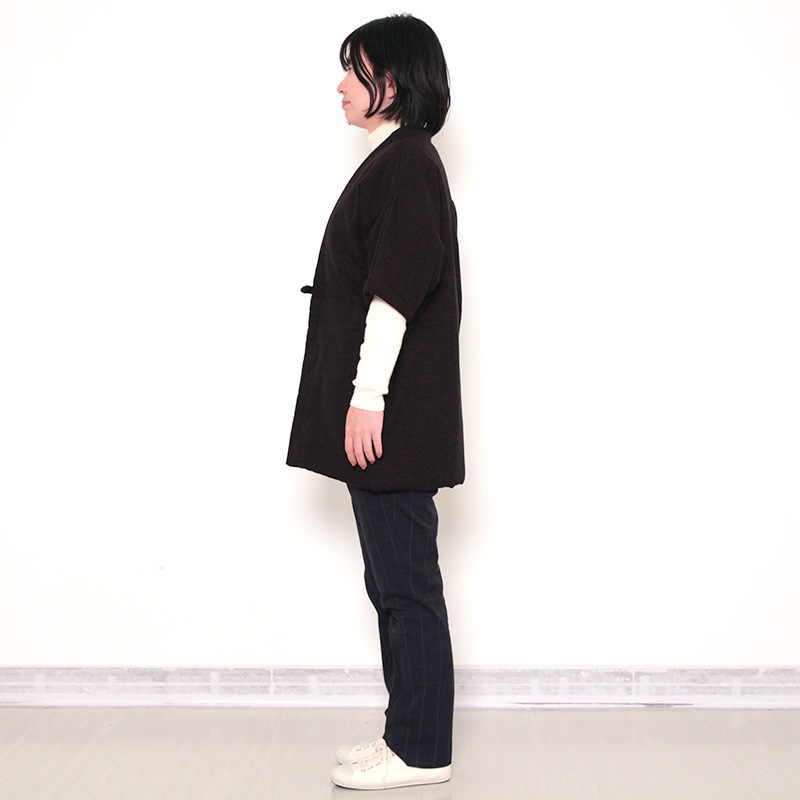 従来の半袖型やっこの型を見直し、より快適に作業ができ、カーディガンのような感覚で着れる五分袖はんてん。通販サイトおよび一部店舗のみの限定販売。日本製。