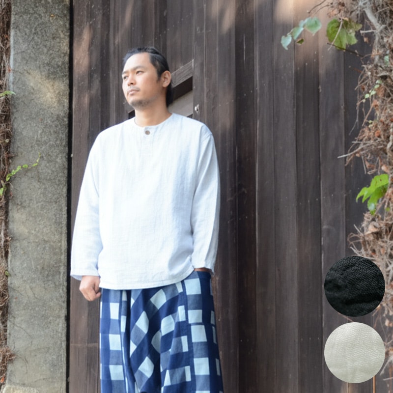 五感 トリプルガーゼ [プルオーバー 丸首チュニック] 黒・白 綿100% M~LLサイズ ※男女兼用