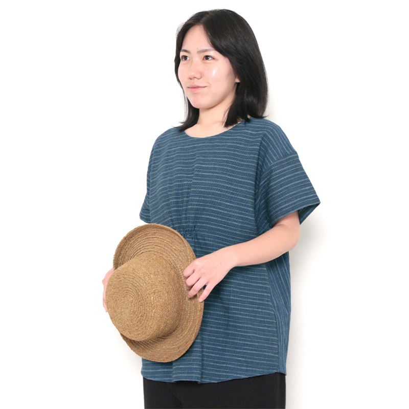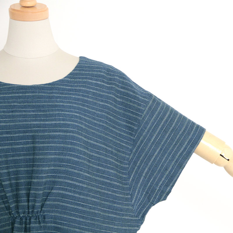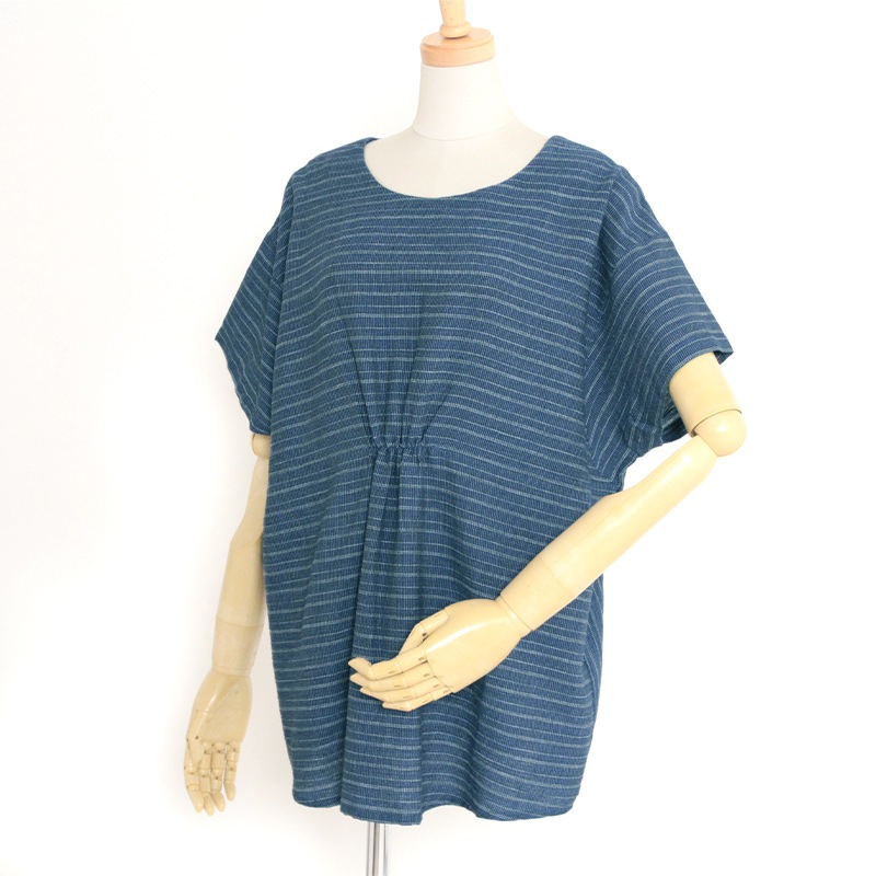 【数量限定】 ブラウス [ことん 風鈴ブラウス 前ギャザー] むら染め 紺 綿100% 夏向け