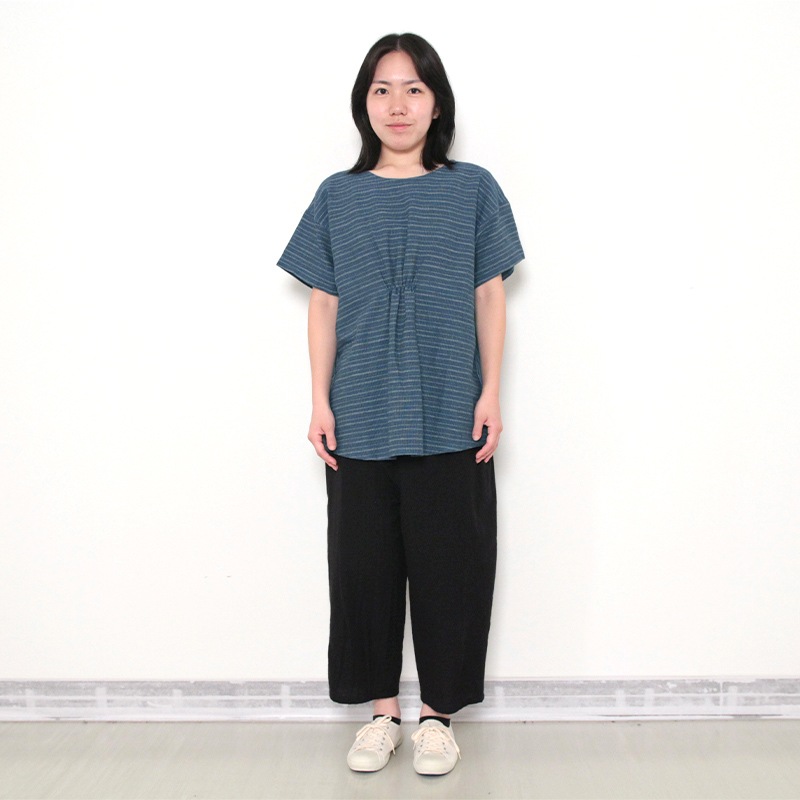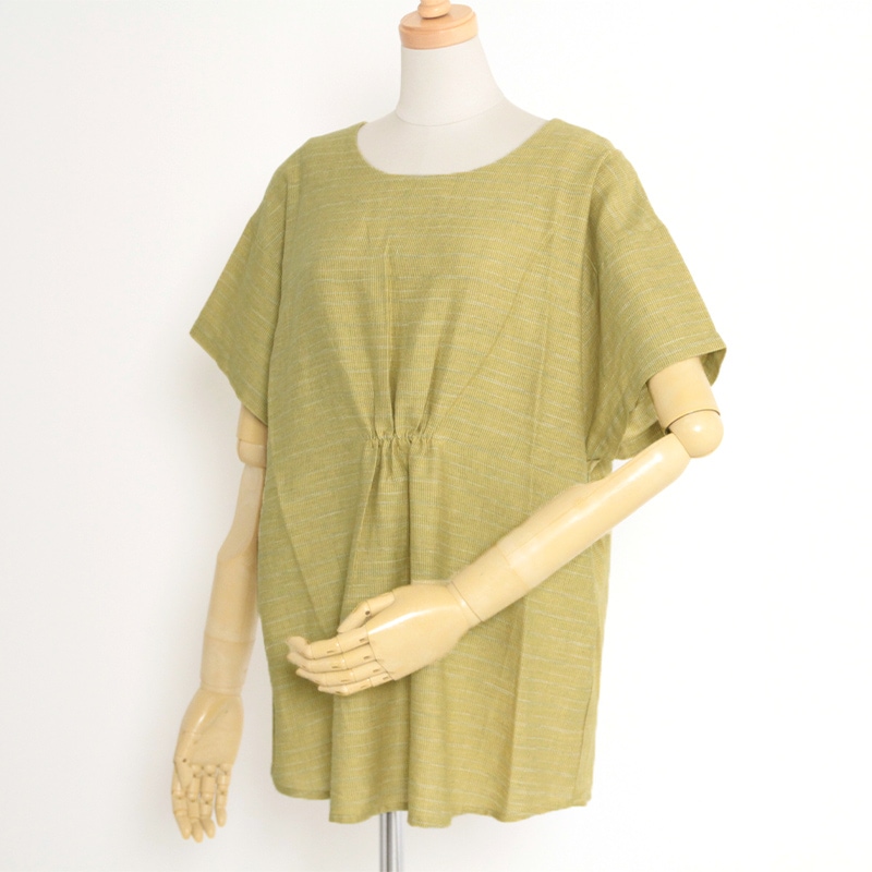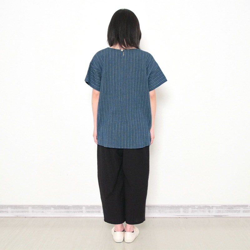 風が通り抜けるような軽い着心地が特徴の和木綿「夏木立」を使用した夏向けブラウス。日本製。