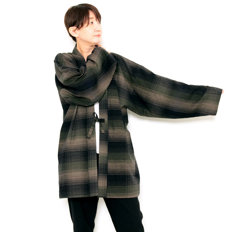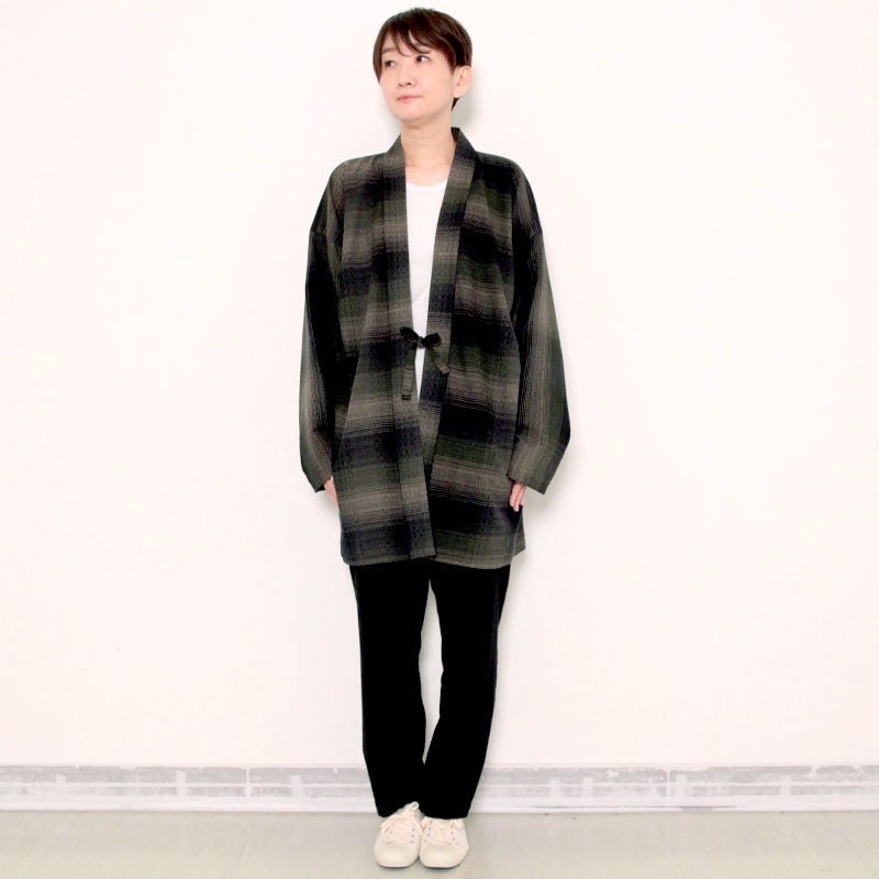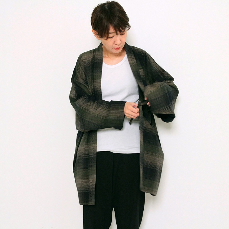 ご要望が多かった羽織に、新色が登場しました。haori hiiragiは、シックな色調に仕上げたチェック柄が美しい羽織。ゆったりとした着心地が人気のワイドサイズ。普段着をオシャレに。日本製。
