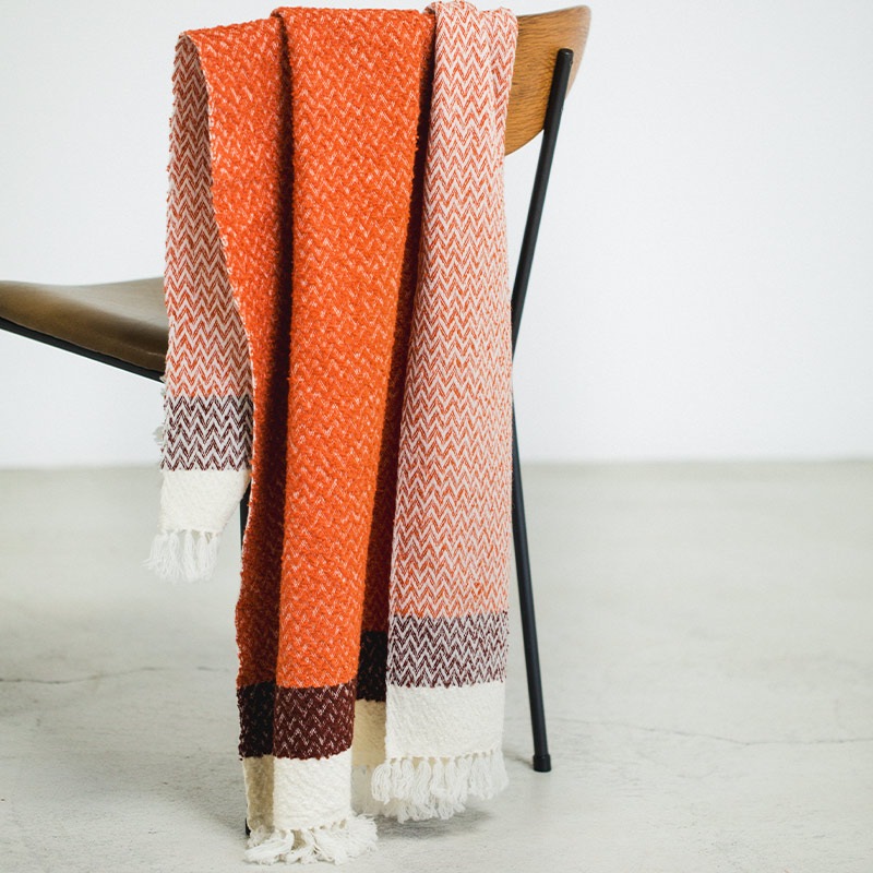 工房織座がつくる、ショールやひざ掛けにも使えるリバーシブルアイテム。ピマ超長綿を使ったつややかなループヤーン素材は、なめらかな肌触りとふっくらとしたボリューム感が魅力。日本製