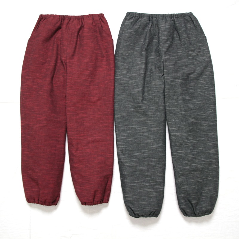 裏地にキルト地を使用した冬に人気のキルトもんぺパンツ。昨年も大好評!落ち着いた色味で合わせやすく、防寒にも最適。はんてんやキルト上着と合わせてご愛用される方も。日本製