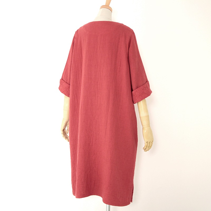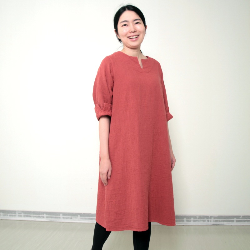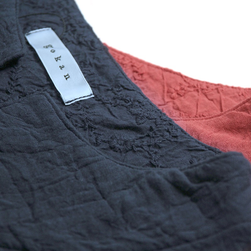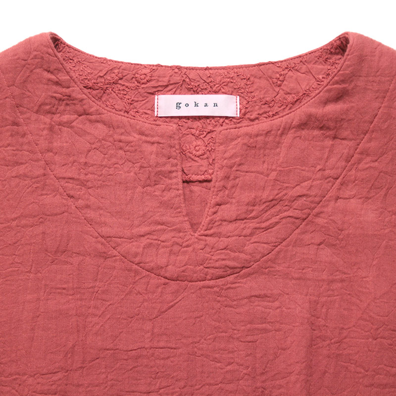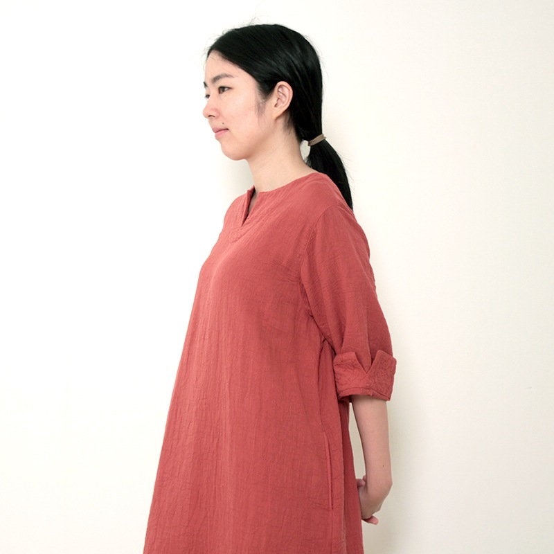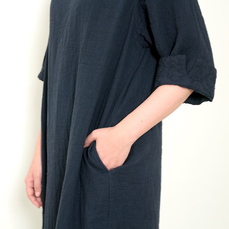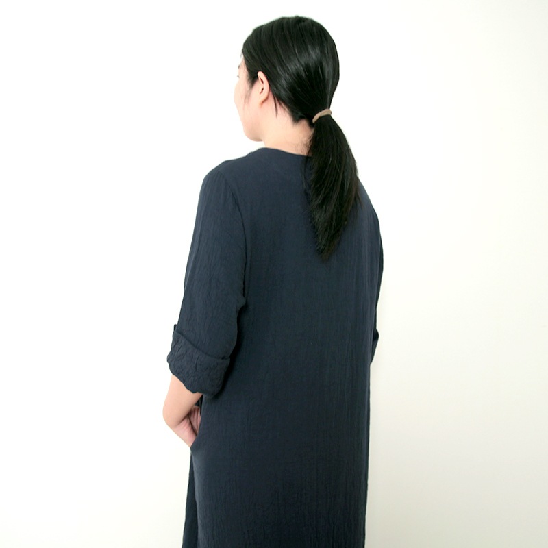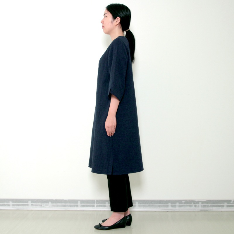 天然素材を中心に上質のモノづくりを行なう五感がつくる三重織ガーゼのワンピース。ガーゼの優しい肌ざわり。新色のグレーが仲間入りしました。日本製