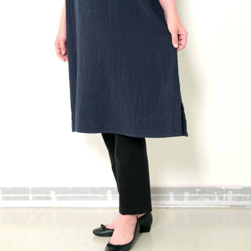 五感 ワンピース [藍染×インディゴ手染め シャーリングワンピース] 綿98% ポリウレタン2% M~Lサイズ