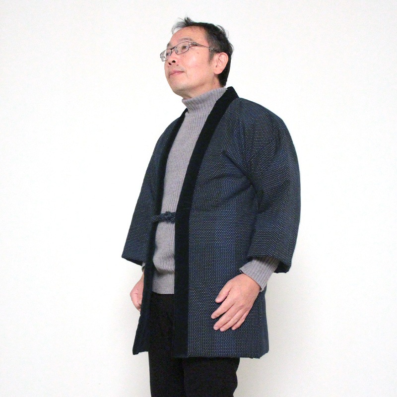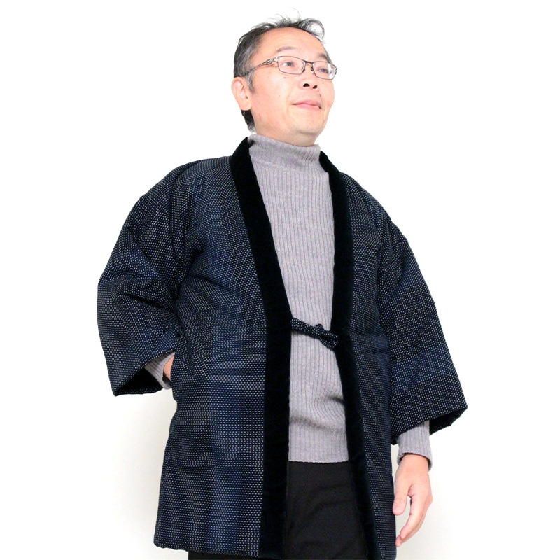 半纏[白根袢天 shortsized]黒・紺 混紡わた ショート67cm丈 ※小さめサイズ(胸囲124cm)