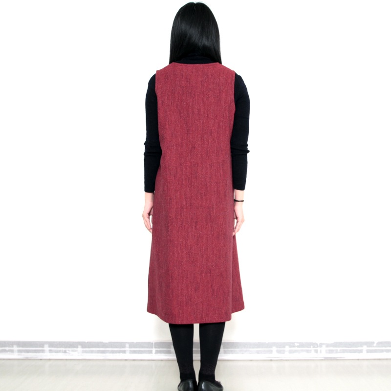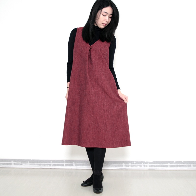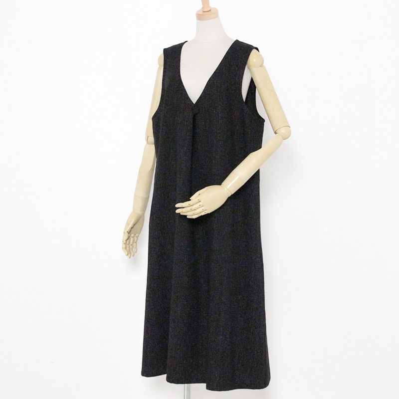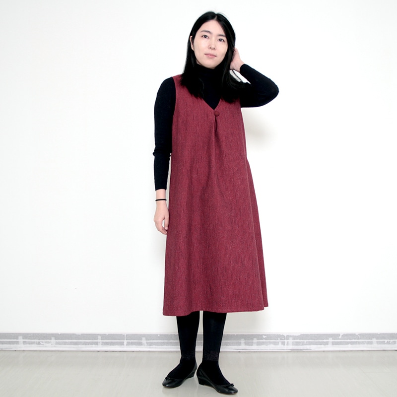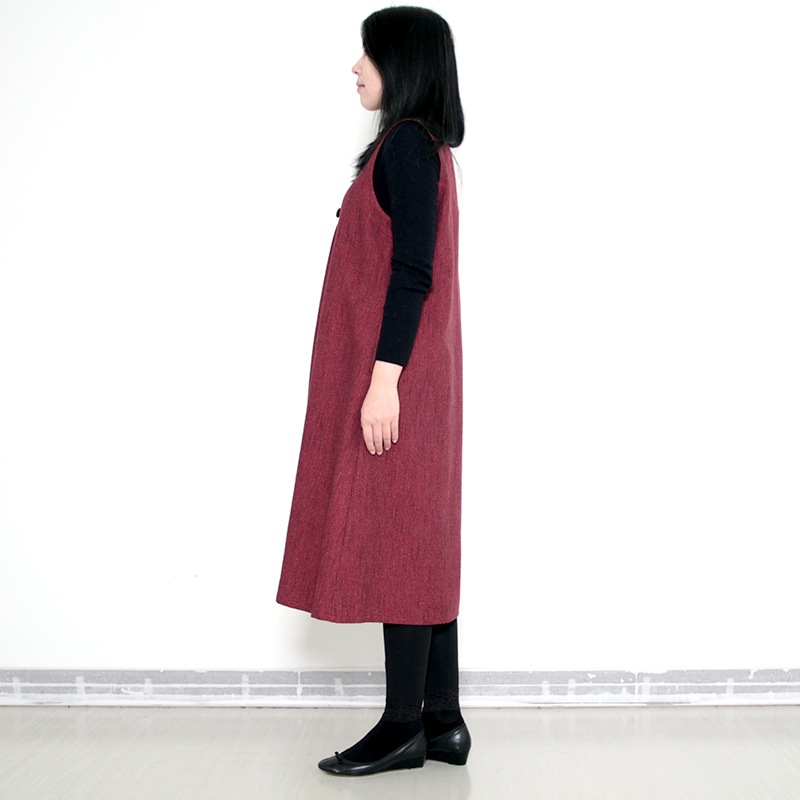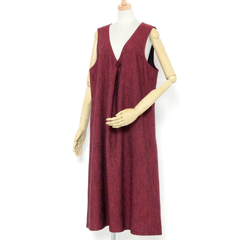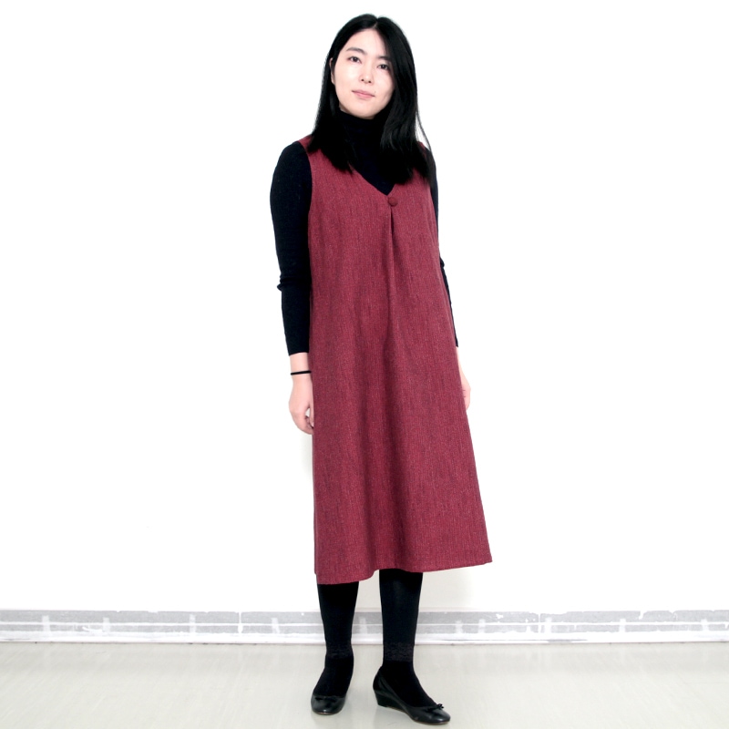 すっぽり着られるデザインのジャンパースカート。 和木綿「熱砂(ねっさ)」を使用した暖かみのある生地で、秋冬も快適に着用できます。 体のラインを拾いにくいシルエットと、胸元のくるみ釦が上品な印象。 実用性と落ち着きを兼ね備えた、ジャンパースカートです。日本製