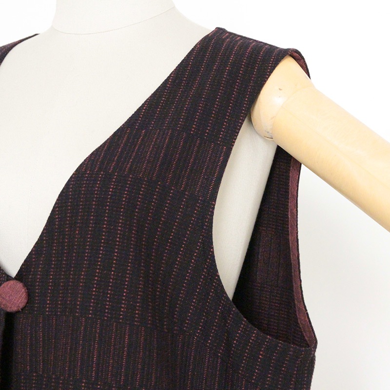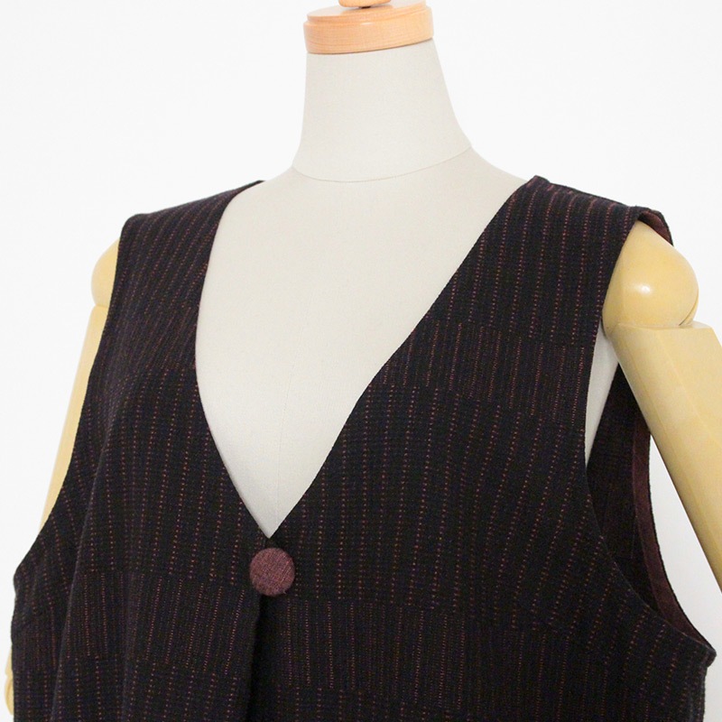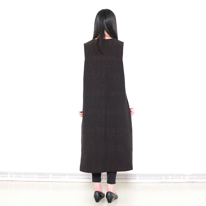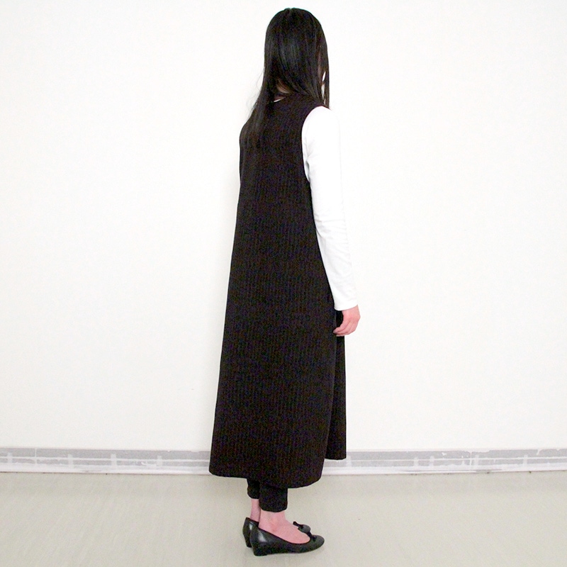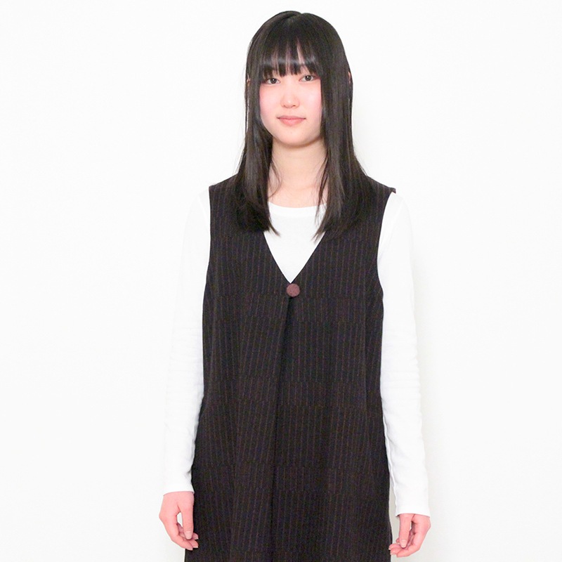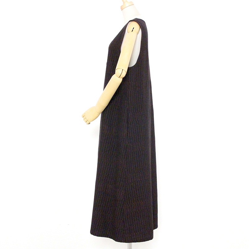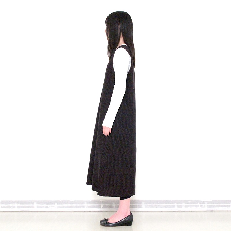 ゆったりとした着心地のかぶり式ジャンパースカートです。 和木綿「光珠(こうじゅ)」の季節感ある落ち着いた表情の生地を使用し、秋冬にも心地よくお使いいただけます。 体型を選ばないシルエットに、胸元のくるみ釦が上品さを添える、実用的で落ち着いたデザインです。日本製