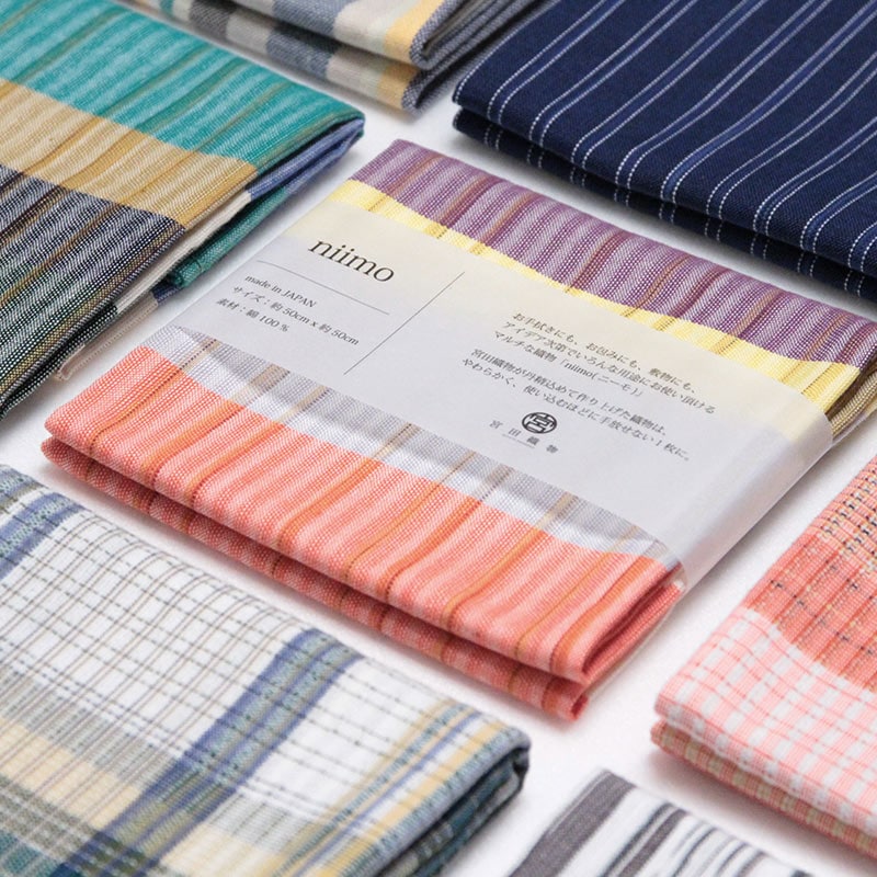 新色が多数登場しました。様々な場面で利用できる「niimo(ニーモ)」お弁当包みにも、ハンカチとしても使用できるサイズ感。シックなギフト用パッケージ入り。日本製