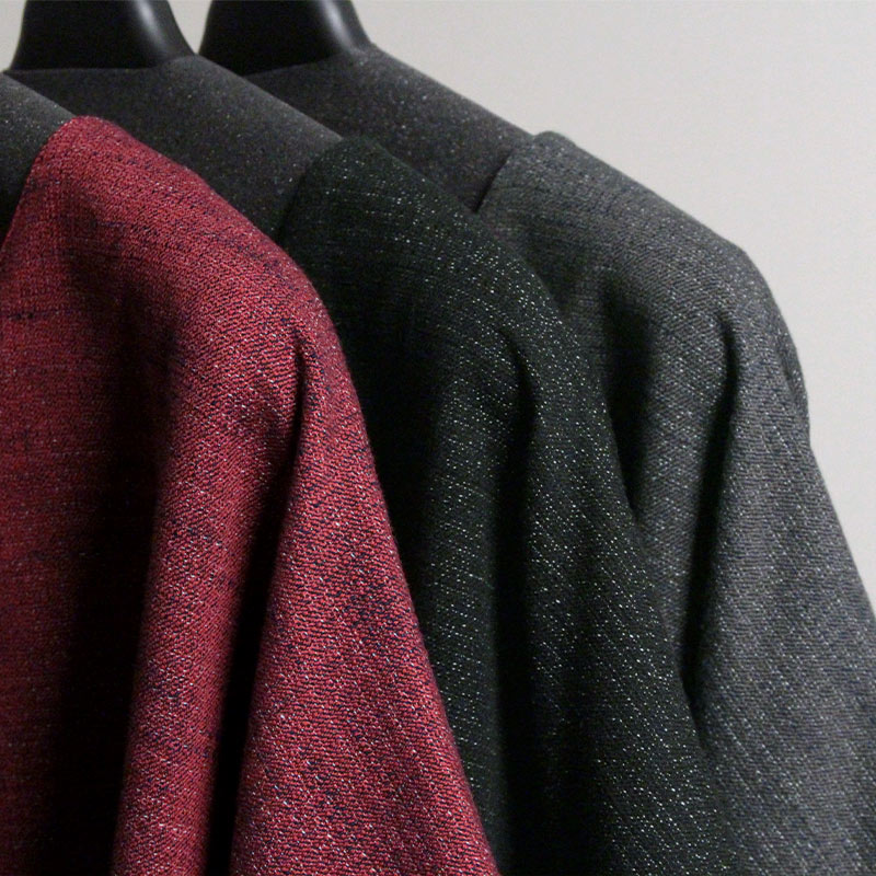 • 和木綿「熱砂」は、熱された砂が様々に色めく様子を、異番手の杢糸で立体的に表現したテキスタイル。