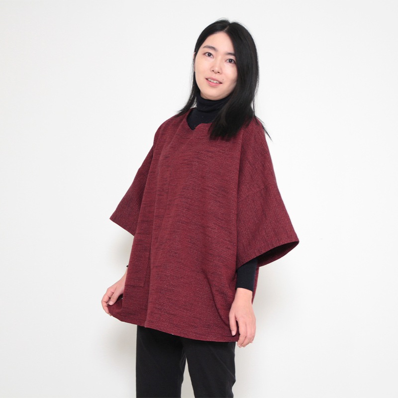 和木綿「熱砂(ねっさ)」を使用したチュニックブラウスができました。 異なる太さの糸が織りなす奥行きのある表情と、やわらかな温もりを感じる風合いが魅力の一枚です。日本製