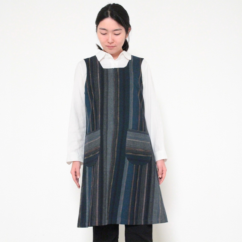 スモック [彩藍 小縞] 全2色 綿100% ※贈りものギフトに